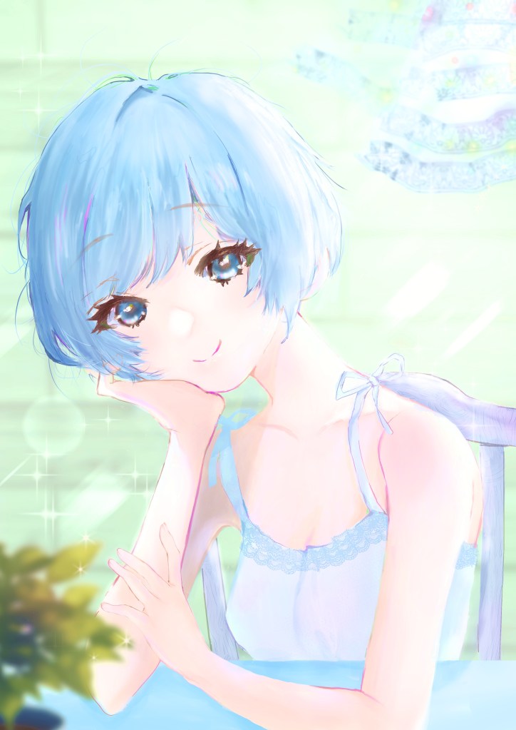 制作時間10時間 真夏日にお家の中で涼しげに過ごしている女の子を描きました。